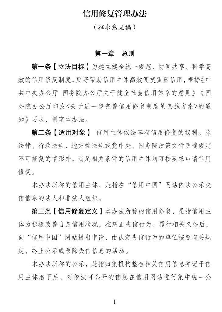 【大河财立方消息】9月1日,国家发改委公告,就《信用修复管理办法(征求意见稿)》向社会公开征求意见。