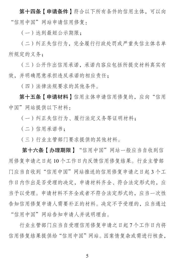 符合以下所有条件的信用主体,可以向“信用中国”网站申请信用修复: